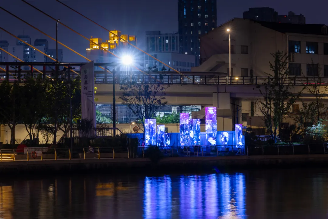 当我们漫步于西康路桥至武宁路桥段,那些独具匠心的“苏河十八湾”灯饰栏杆,不仅以其独特的设计装点着河岸,更在夜晚时分绽放出璀璨的光芒。还有三期工程中全新推出的苏州河城市级IP——《鸟语花香(箱)》,独具生态特色的景观照明装置,巧妙地融合了自然元素与现代照明技术,营造出一种生机盎然的氛围,带来视觉、听觉、嗅觉的独特感受,让人们忘却城市的喧嚣,沉浸在大自然的怀抱中。