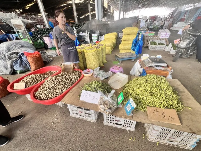 除了芋艿,露天种植的毛豆目前也已大量上市,但是由于高温,今年的毛豆价格略高于往年。批发价约在4元左右。