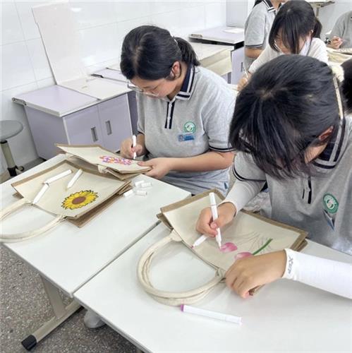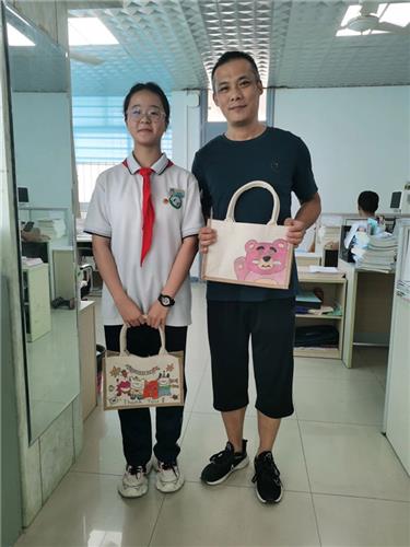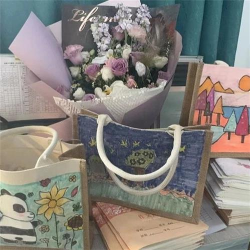 学生们拿起画笔,亲手绘制独一无二的帆布袋,在课间敲响办公室的门,满怀感激地赠与亲爱的老师们,感谢老师们的无私奉献与辛勤付出,表达对老师们的爱与祝福。