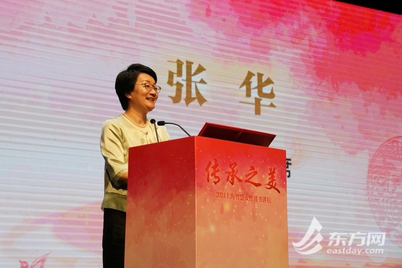上海市妇联主席张华在致辞中说,上海是一座处处闻得到书香,感受得到文化气息的魅力都市。妇联每年举办女性读书讲坛,发布亲子阅读书单,今年又协同新华书店、钟书阁等共同推出“家+书屋”项目,吸引年轻家庭共同打造家门口的家庭教育新空间、家庭教育俱乐部,构筑充满爱、智慧与正能量的家庭生态系统,培育社会主义家庭新风尚。今年市妇联牵头成立的“非遗女性传承人联盟”,通过传人共研、技艺共促、资源共享、合作共进的平台,展现致力于非遗文化传播的当代女性在新时代迸发出的焕新力量,让非物质文化遗产绽放出更加迷人的光彩。希望更多人了解非遗、爱上非遗,参与到非遗文化的保护和传承中来,为全面打造文化自信自强的上海样本贡献巾帼力量。