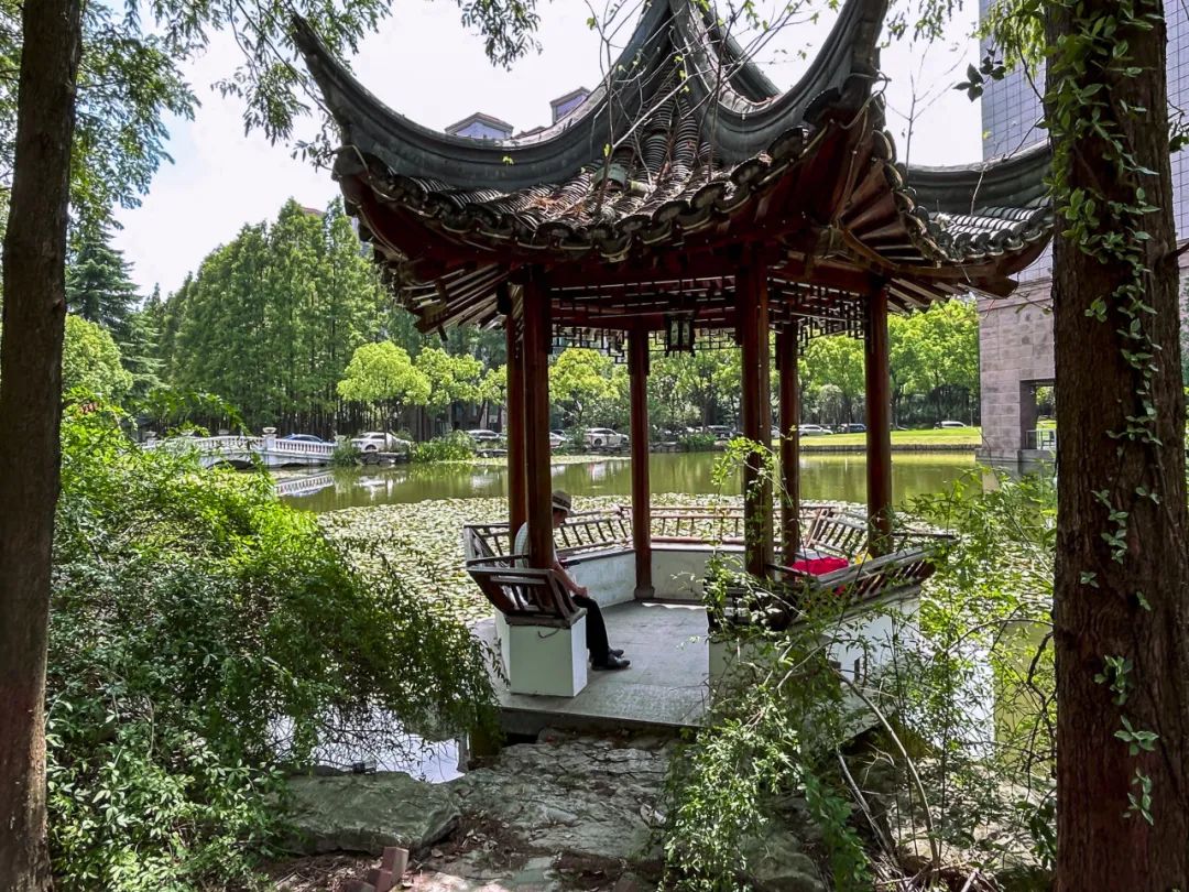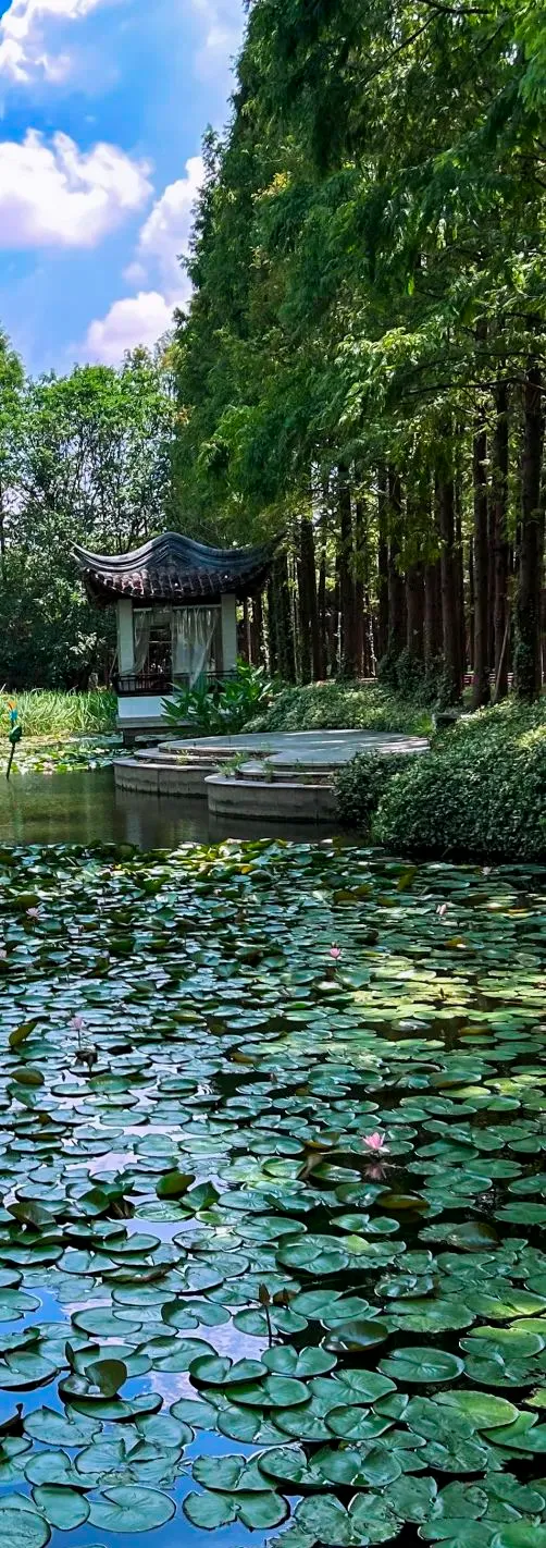 池塘之上,几座精致的小桥横跨其间,仿佛是连接现实与梦境的纽带。踏上小桥,每一步都孕育着轻盈的节奏,时空的界限在这里变得模糊起来,让人感到似乎回到了那个诗意盎然的江南水乡。桥下流水潺潺,清澈见底,让人看了心旷神怡,而远处的楼阁则更添几分古韵与雅致,它们或隐于绿树之中,或临水而建,与池塘、小桥一同构成了一幅和谐共生的画面,让这一切都越发如梦似幻起来,看到这里,你有没有与家人一起去体验一番的冲动?