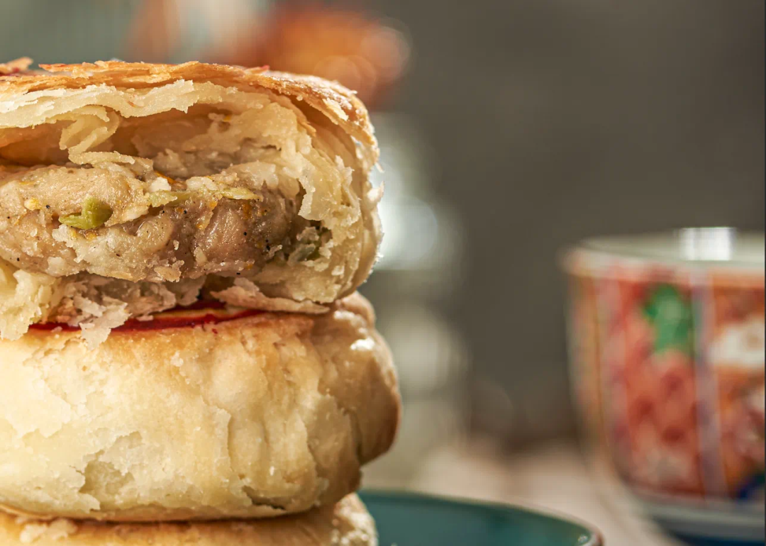 放入烤箱烤制25—30分钟后,新鲜出炉的月饼滋滋冒油,层层叠叠的酥皮伴着独特的藤椒香气在空气中炸开,鲜嫩多汁的鸡肉与麻辣的藤椒相互交融,给人带来全新的味觉体验。