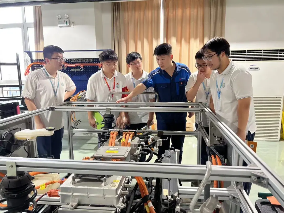 课堂上,技师讲师团队理论+实践讲解公交客车各种原理,同时组织同学们前往巴士五公司修理车间实地参观、学习,将公交维修保养日常的技术、安全和实操等知识分享给同学们。