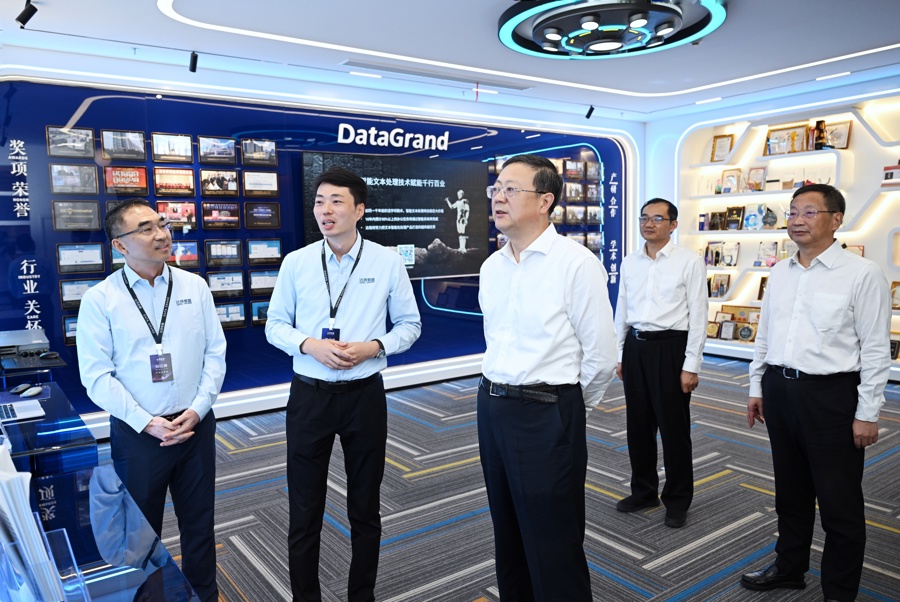 经过30多年发展,张江科学城汇聚起一批战略科技力量,涌现出一批重大创新成果,形成了一批高端产业集群,是全市科技创新的高地。陈吉宁来到扎根张江近十年的达观数据有限公司,听取公司总体概况介绍,察看“曹植”大语言模型在能源电力、工业制造、金融等领域应用场景演示,了解基础技术、场景应用及市场前景,关切询问下一步发展计划和所需支持帮助,鼓励企业把握机遇、再接再厉,锚定优势领域深耕细作,依托张江科创优势开展协同创新,加快探索形成新的商业模式,切实提升企业核心竞争力。