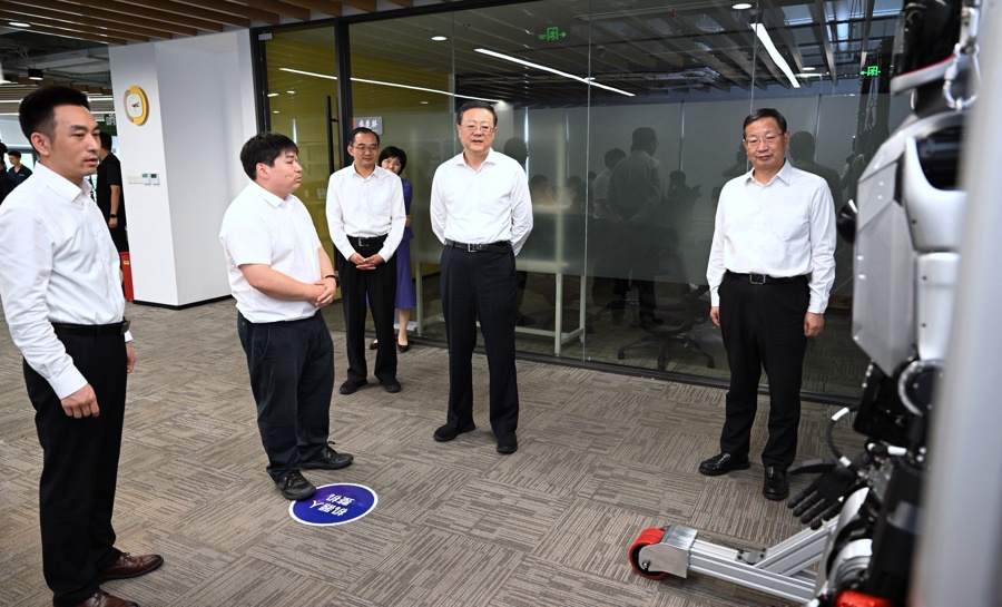 在国家地方共建人形机器人创新中心,陈吉宁听取中心建设发展、主要产品及研发应用情况介绍,走进具身智能实验室察看人形机器人装配调试线和场景数据采集演示,了解开源社区构建及训练场建设进展,就关键核心技术攻关、场景数据采集应用以及发挥整机带动作用、牵引形成更具竞争力的产业集群,同相关负责人作了交流。