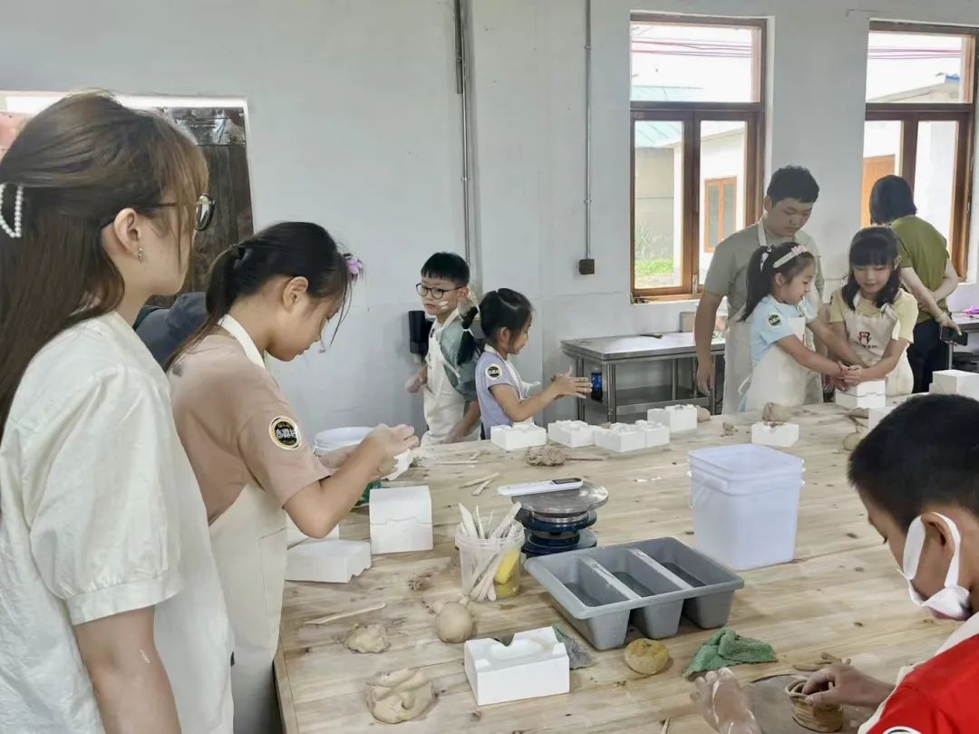 在陶艺家和志愿者的现场指导下,