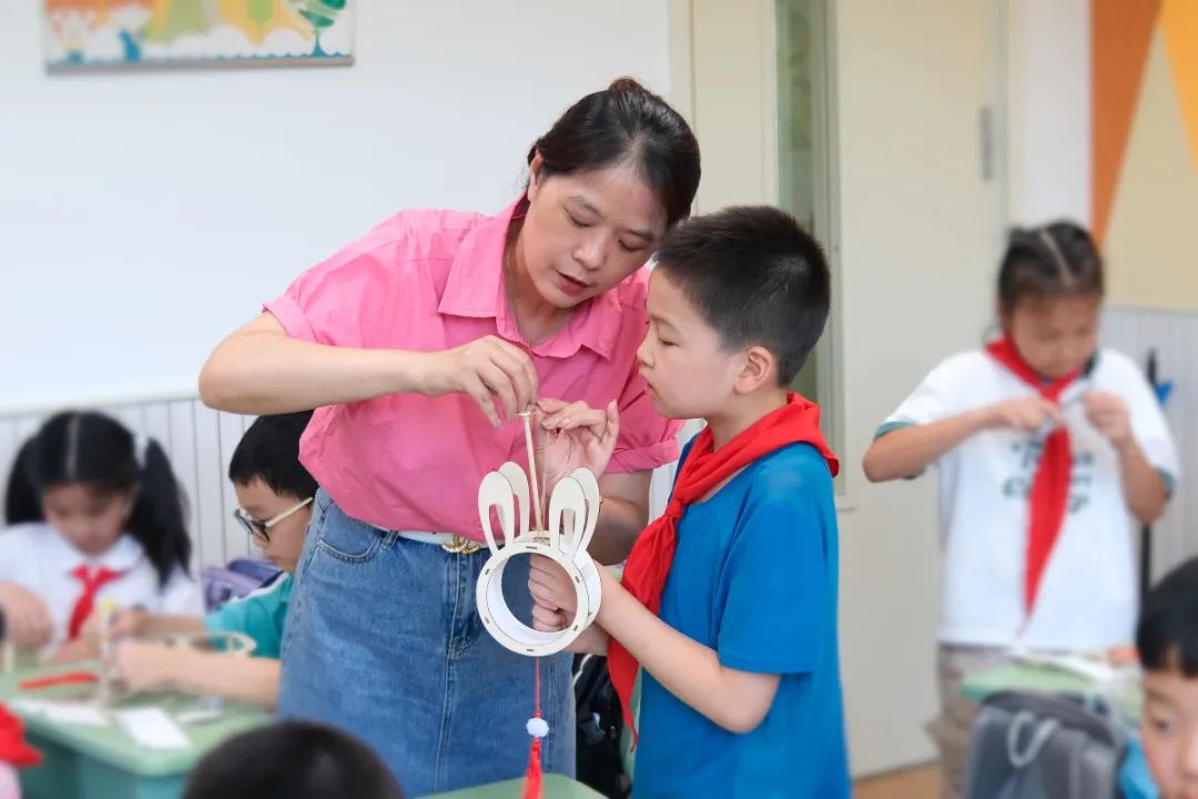 东安三村小学借中秋之机,将中秋节传统文化教育巧妙融入其中,精心筹备了一场名为“童心望月,手作中秋”的全员导师活动。在“童心望月”环节,导师们通过展示精美的图片,引导孩子们猜测中秋节的各类习俗,还鼓励孩子们分享自己与家人共度中秋的美好经历。随着“手作中秋”活动的正式开启,孩子们全神贯注地观看制作小视频,在导师们的悉心指导下,开始动手制作小灯笼。他们小心翼翼地剪裁、粘贴,不一会儿,一个个精美的小灯笼在孩子们的手中诞生了,它们散发着温暖的光芒,映照着孩子们的笑脸。