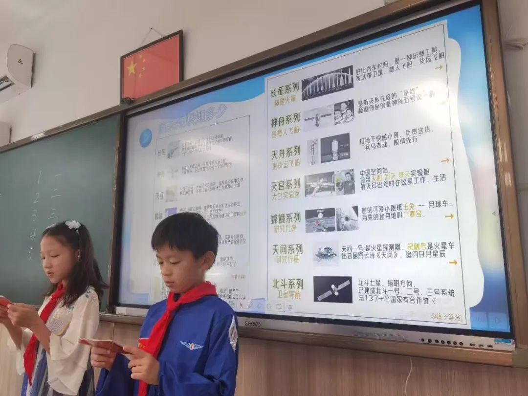 园南小学的校园里也弥漫着浓浓的节日气息,同学们穿上了飘逸的汉服,仿佛穿越时空。一、二年级的小朋友们讲述着嫦娥偷吃仙药飞升到月宫的故事,分享了中秋节的传统习俗,更是在小辅导员们的介绍下,了解了现代中国航天科技的重要里程碑“嫦娥工程”,感受中国航天的辉煌成就。孩子们精心筹备了“月华映梦,星辉铸志”的主题队会,他们以“月”为媒玩起飞花令,用诗句编织出一幅幅美丽的中秋画卷,也激起对月球的好奇和向往。
