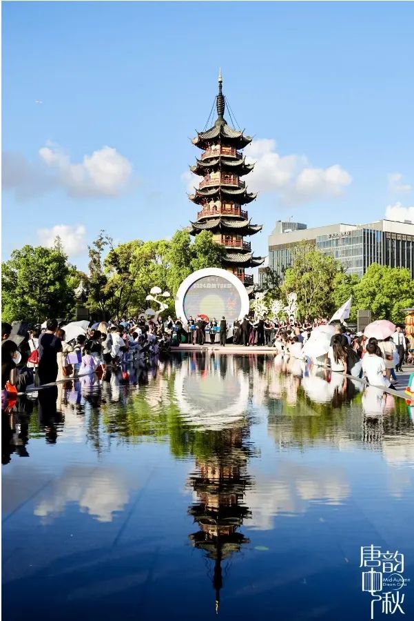活动从当天下午就已开始,如洗的碧空中白云朵朵,庄严的龙华塔和圆月装置倒映在水池中,呈现出如诗如画的唯美意境,引得大家纷纷拍照打卡。