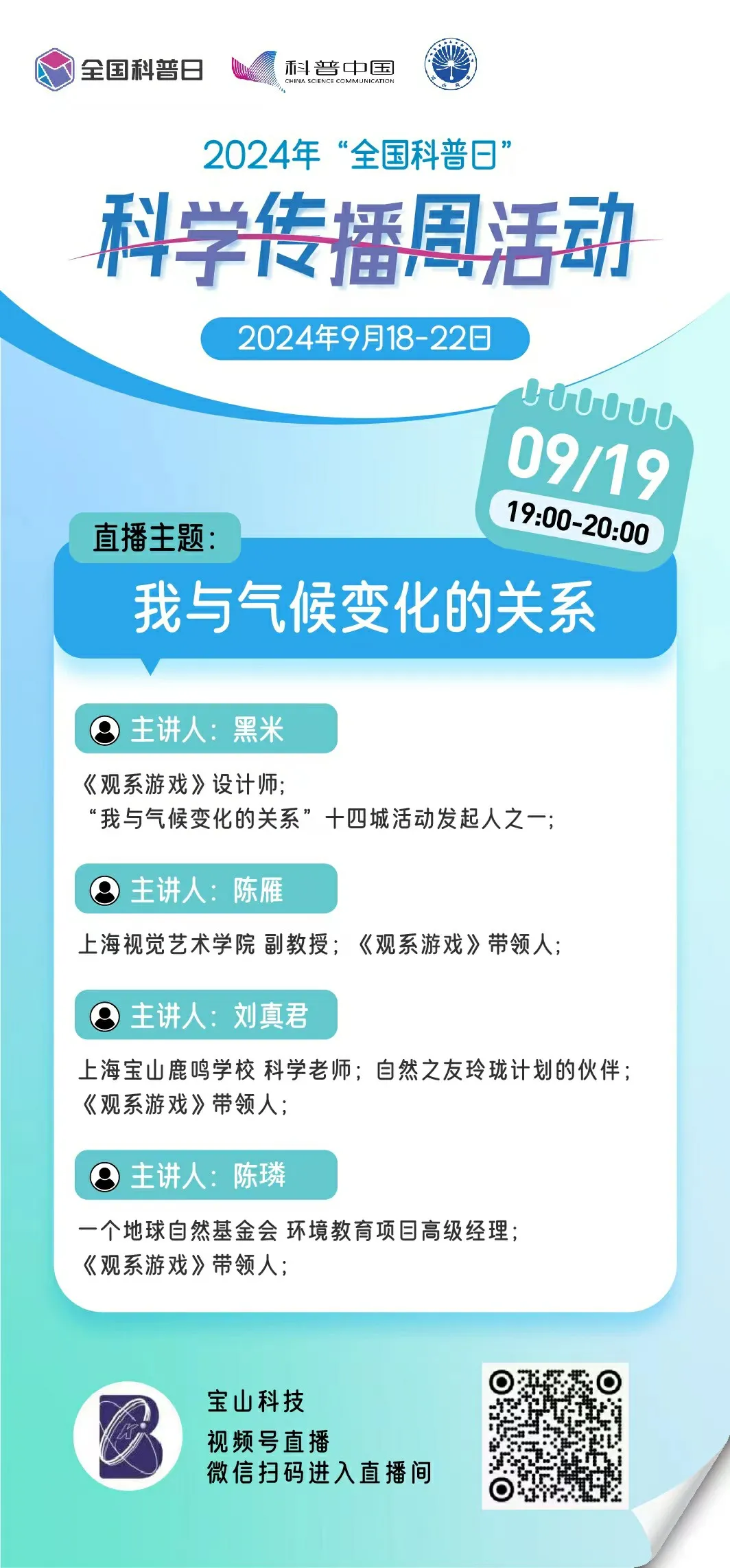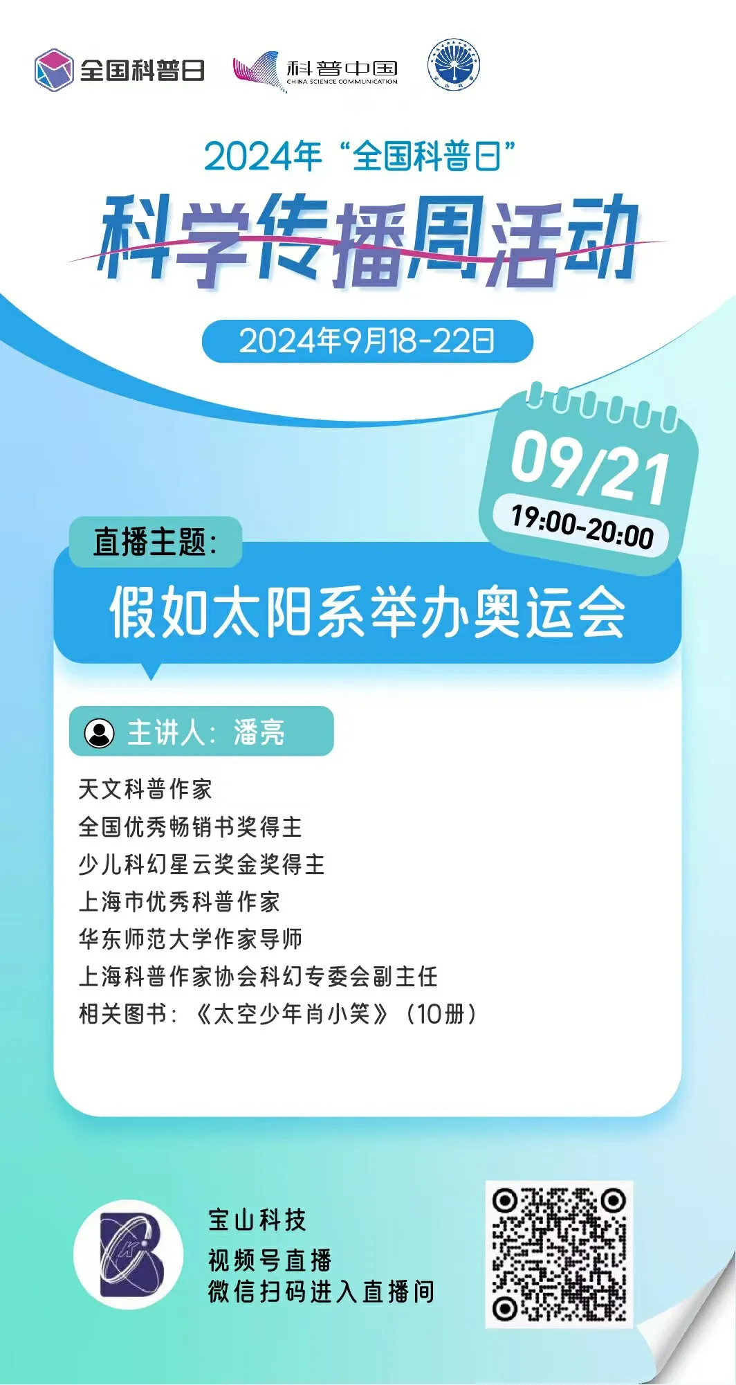 参与方式:关注“宝山科技”视频号或者扫码进入直播间