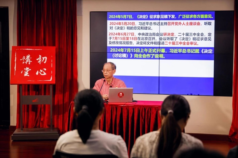 党的二十届三中全会强调,党的领导是进一步全面深化改革、推进中国式现代化的根本保证。全会审议通过的《中共中央关于进一步全面深化改革、推进中国式现代化的决定》就提高党对进一步全面深化改革、推进中国式现代化的领导水平问题做出了深刻阐述。9月20日,初心讲堂第89讲在中共二大会址纪念馆开讲。本次活动邀请上海市学习贯彻党的二十届三中全会精神宣讲团成员,中国浦东干部学院原常务副院长、教授、博导奚洁人担任主讲。