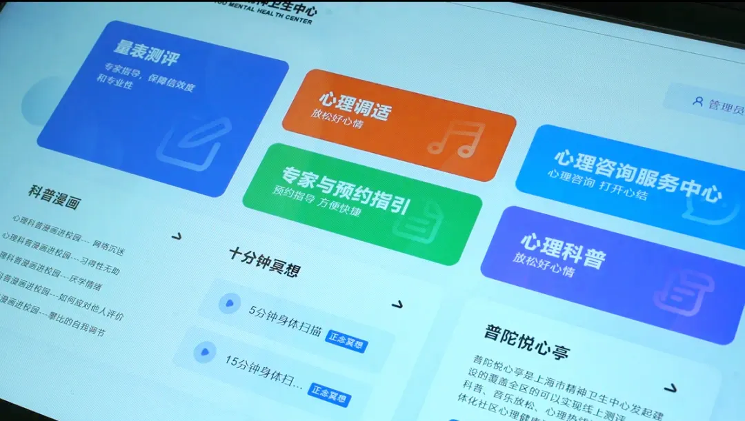 在设计上,开发团队向市民朋友提供全链条闭环式的心理服务。“‘悦心亭’可以通过测评量表进行心理筛查,如果筛查出来存在轻度的心理问题,可以利用亭内的心理疏解资源,例如睡眠干预、正念等心理舒缓音乐进行舒缓。如果是存在中重度的心理问题,也可以通过‘悦心亭’的心理科普资源,以及相关心理门诊信息去寻求更加专业的帮助。”普陀区精神卫生中心疾控精神卫生分中心综合办科员伍揆向记者介绍。