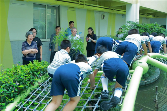 空间建设组专家走进校园,将所看到的和学校汇报中所提及的一一对应,专家们一边感叹“竹园真小啊”一边表示“学校真是动足了脑筋”,尤其是看到学校为了增加学生活动面积、体育运动面积、各类素养培育空间,真的是在“螺蛳壳里做道场”。