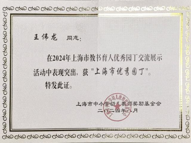 他重视“以德施教、以德立身”,在言行举止、为人处事、工作态度、教学实践、职业道德等方面树立良好表率。用勤奋踏实的工作、高度的敬业精神与进取意识完善自己的人格魅力;用自己的真心、诚心、爱心、恒心浇灌每一个孩子的成功,曾2次获宝山区园丁奖,获宝山区“四有”好教师、宝山区“学陶师陶”标兵、宝山区“最美教师”等荣誉称号。
