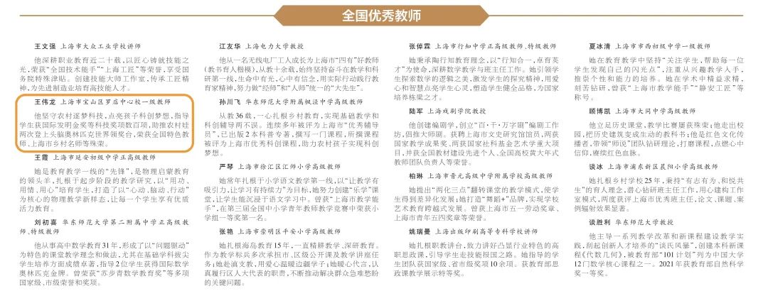 近日,教育部揭晓2024年全国教育系统先进集体、先进个人名单,宝山区行知中学张倬霖、罗店中心校王伟龙成功入选!