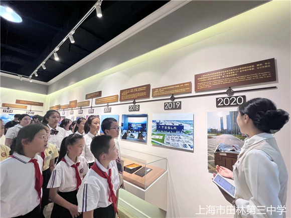 进入馆内,首先映入眼帘的是一整面白玉兰墙,上海的市花以纯洁高雅的姿态,成为了这座城市独特的象征。每当春回大地,万物复苏之时,白玉兰便悄然绽放,以其不染尘埃之姿,点缀着上海的每一个角落。馆内展品围绕“百年上海”、“改革开放里程碑”等主题描绘了上海建设发展的光辉画卷,生动诠释了上海作为“中国共产党的诞生地、改革开放的排头兵、创新发展的先行者”的卓越历史地位。在参观中,同学们还初步了解了上海市人大的职责和工作方式,对它在上海辉煌发展史中所发挥的举足轻重的作用有了进一步认识。
