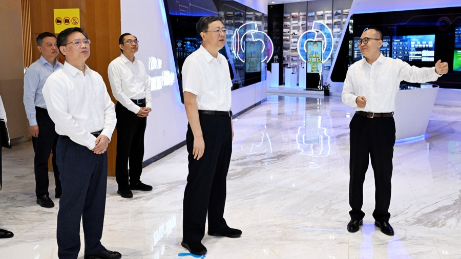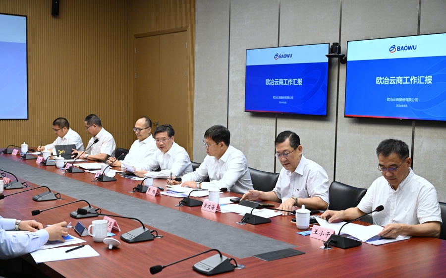 欧冶云商股份有限公司是中国宝武集团整合原有大宗商品电子商务优质资源,以全新商业模式建立的钢铁生态服务平台,立足钢铁产成品数智化供应链高科技平台公司定位,为产业链上下游提供生产性互联网综合解决方案服务。陈吉宁在公司听取企业发展概况和主营业务介绍,察看钢铁产品数智供应链产品平台,了解平台在大数据和区块链技术应用、钢铁行业EPD(环境产品声明)、助力构建绿色低碳供应链体系等方面的创新探索。