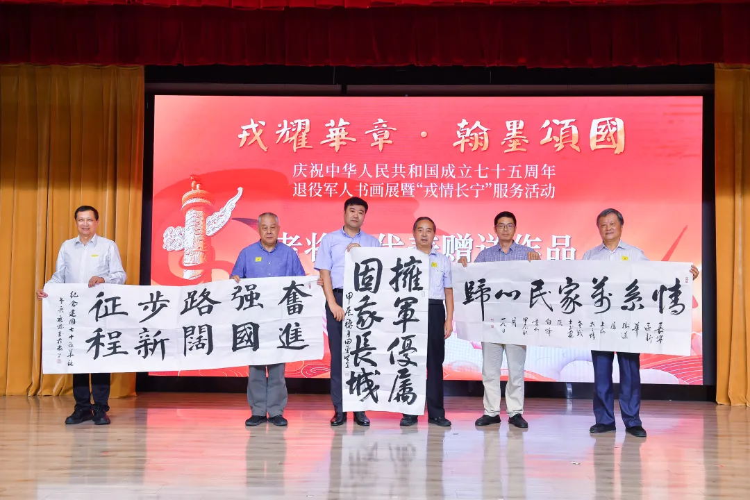 本次活动中,还特别设置了赠送红歌合集和书画作品环节。原总政治部副主任、军纪委原书记童世平上将把自己精心收集的红歌合集赠送给了长宁区退役军人事务局党组书记、局长徐大平。此外,田金生将军和退役军人艺术家代表祝捷、白烽向区退役军人事务局、市拥军优属基金会长宁区工作委员会和新华路街道办事处捐赠了书法作品。“奋进强国路,阔步新征程”“拥军优属,固家长城”“情系万家民心归”等作品深情寄托了他们对退役军人工作的美好祝愿,展现了他们退役不退志、退伍不褪色的精神风貌。