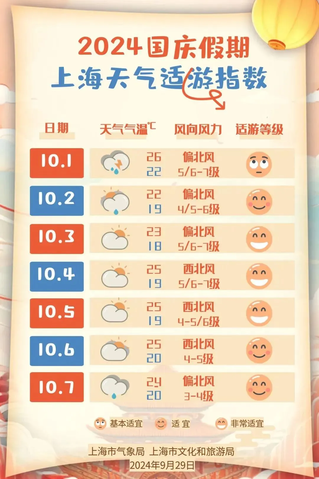 国庆期间上海旅游天气地图发布!有出行计划的小伙伴,看这里......