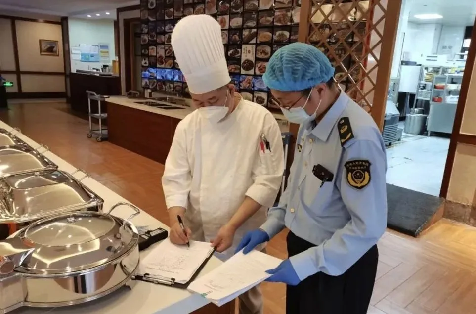 区市场监管局启动重大活动食品安全Ⅰ级保障,严把大赛食品“安全关”。驻点监管干部全面排查各供餐点位食品原材料进货查验、从业人员健康管理、食品加工过程控制、等重点环节,审查赛事期间食谱菜单,督促餐饮服务单位履行食品安全主体责任,签订《重大活动餐饮服务食品安全承诺书》,并通过食品安全快速检测,确保活动期间食品原材料安全。