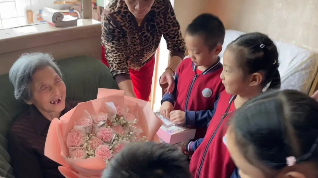 童阿婆今年92岁,是独居老人,平日里和孩子分开住,比较孤独。当天那么多孩子的上门关心让她笑得合不拢嘴。“真的很开心,很开心,那么开心的日子没有过。”童阿婆说道。