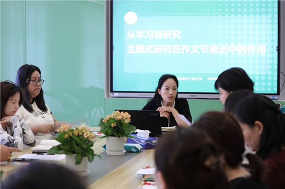随后,范校长和老师们一起讨论了主题式研修对于作文节推进所起的作用,并且和大家现场讨论了“主题可以从何而来?”“怎样将问题转化为主题?”“作文节主题和日常教学主题有何区别?”
