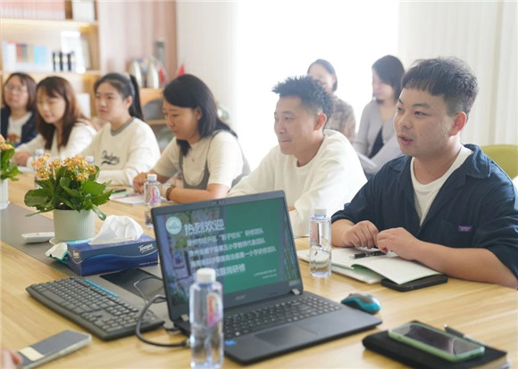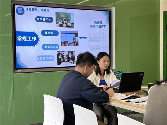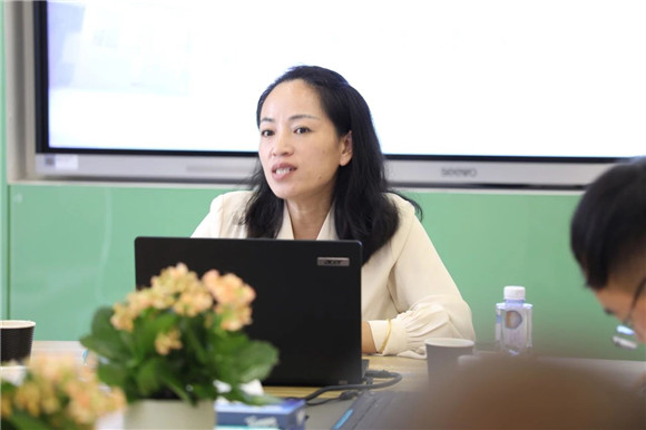 张杨校区数学项目主任万佳臻老师以《双新”引领,“竹”梦新程》为主题,与威宁县第五小学的教师代表们就张杨校区数学项目组的建设情况进行了深入的交流与分享,此次分享旨在推动两校数学教研组的发展,提升数学教学质量,促进教师专业成长。在交流中,万老师强调了张杨校区数学项目组文化建设的重要性,通过组织各层面各类教研活动,增进教师之间的交流与协作,形成积极向上的项目组文化,从而加强教师的团队合作精神和创新意识。
