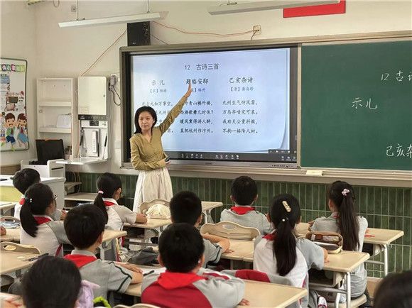 二年级杨海兰老师师执教了二年级古诗《登鹳雀楼》,在执教过程中,杨老师注重引导学生通过朗读、想象、感悟等多种方式,深入体会诗歌的意境和哲理。学生们在课堂上积极发言,畅谈自己对诗歌的理解和感受,展现出了对古诗的浓厚兴趣和热爱。