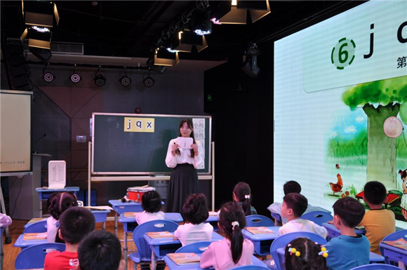 教学环节,由上海市黄浦区第一中心小学李家歆、黄唯蓉两位老师分别执教一年级上册第三单元《j、q、x》第一、二课时。李家歆老师通过创设遨游拼音王国的教学情境,引导学生在游戏中学习拼音,充分激发了学生的学习兴趣。黄老师则从复习环节出发,引导学生借助拼音认识生字和词语,练习朗读儿歌《在一起》。