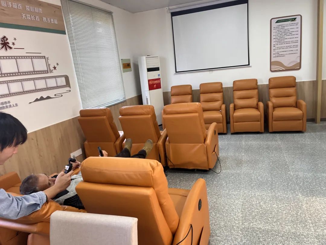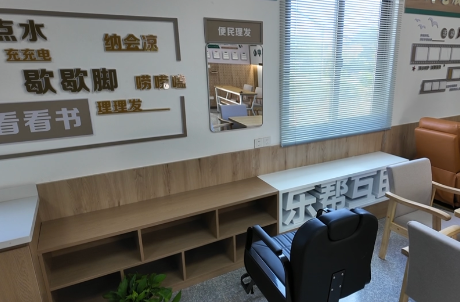 一旁的便民服务区则提供了一系列贴心服务,如为老年人免费理发等。紧邻的观影休息区配备了全新的电动按摩椅,老人们可以边放松边欣赏电影,享受身心愉悦。而儿童活动区的设立,更是让老人带孩子前来时有了更多便利,孩子们可以在这里尽情玩耍,老人们也能安心享受服务。