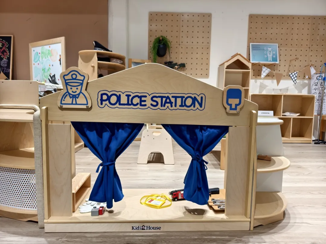 例如在这个叫作“娃娃家”的区域,就着重打造了小朋友们喜欢的做游戏活动场景,切面包、当警察……各种角色都是孩子们喜欢尝试和憧憬的,做游戏就是孩子们成长的重要方式,也是他们的快乐来源。