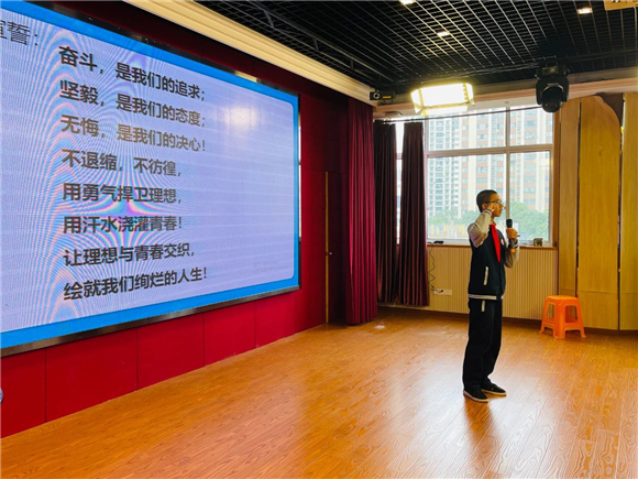 两位同学的发言,激起了初三学子们的青春梦想和壮怀激情,在初三(2)班韩瑜同学的带领下,全体学生举起右手,庄严宣誓:
