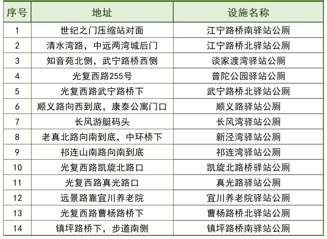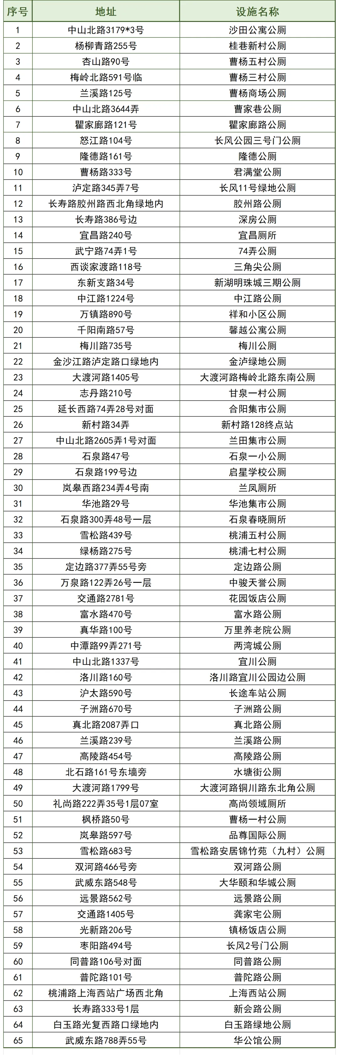 普陀区现有适老化适幼化改造后苏河驿站厕所名单