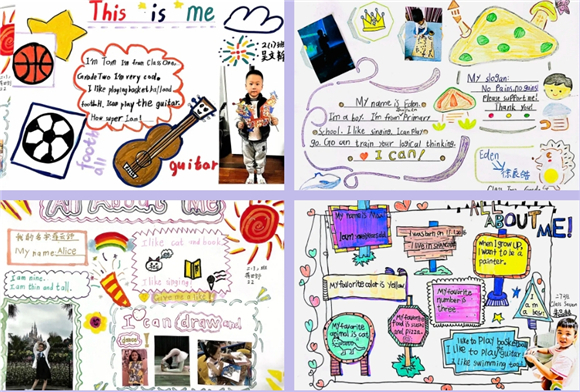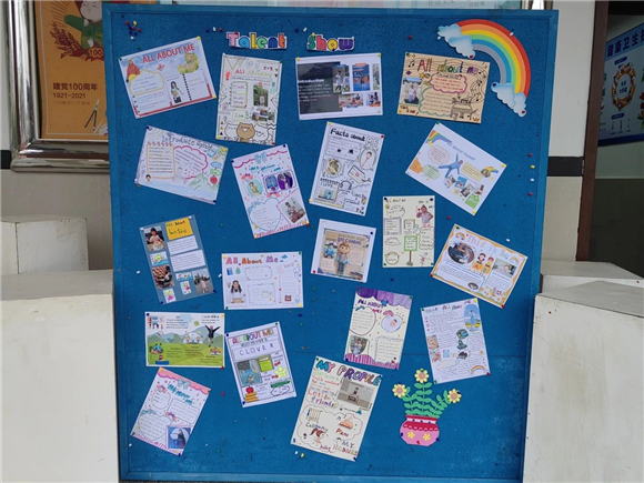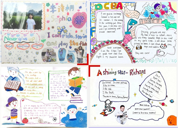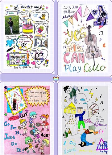 每一张海报都承载着孩子们满满的童真和对自我的认知。才艺海报制作的过程不仅提供给孩子们才艺展示的空间,更将英语知识自然地融入其中。他们在制作中通过询问、查阅等不同的学习方法自主探究了所需的词汇和句子来表达自己的想法,大大提高了英语的实际运用能力。