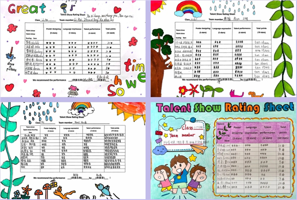 大家在彼此点赞中学会发现和欣赏别人的闪光点。通过分组合作,孩子们学会了倾听他人的意见,尊重团队成员的想法,有效地提高了团队协作能力。同时,制作评分表也让他们站在评委的角度去思考问题,培养了批判性思维和评价能力,进一步加深了对才艺展示和英语表达的理解。