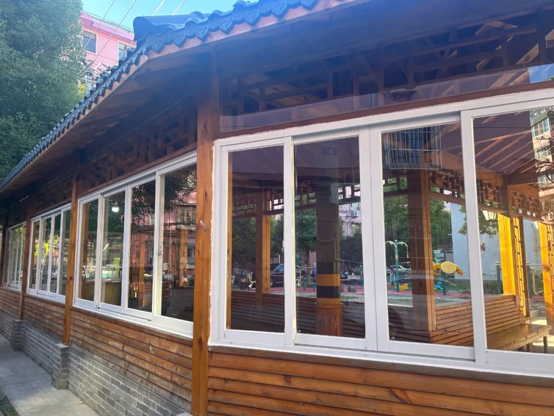 整合多方意见后,最终决定在长廊一边加装挡风玻璃,既可以遮风挡雨,又能实现光线通透。