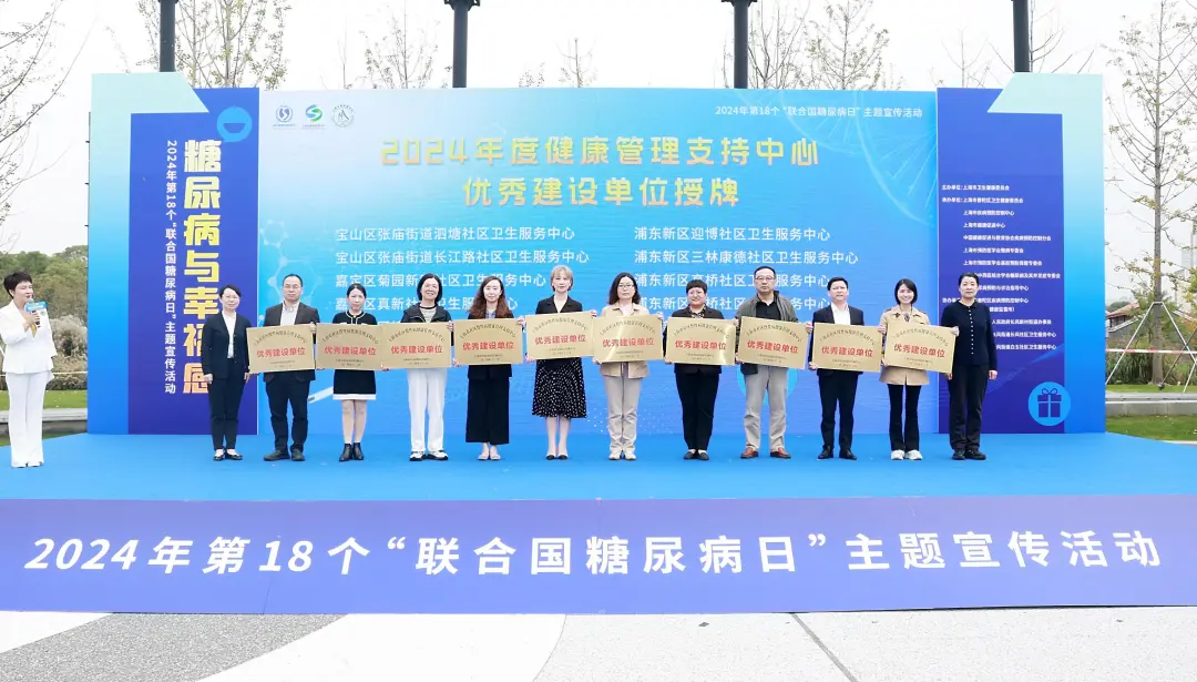 虞涛、周艳为十家荣获“慢性病健康管理支持中心优秀组织奖”称号的单位颁奖。近年来,上海在慢性病综合防治服务管理方面持续发力,尤其在包括糖尿病在内的影响居民健康的主要慢性病管理上,不断提升健康管理服务的质量、效率与效果。自2020年起,本市依托第五、第六轮公共卫生三年行动计划,积极探索整合型慢性病全程管理模式,大力推进社区慢性病健康管理支持中心建设。这一服务模式深受广大市民群众的欢迎与认可,为居民的健康幸福增添了有力保障。慢性病健康管理支持中心的建设,也得到了各区疾病预防控制中心的大力支持。