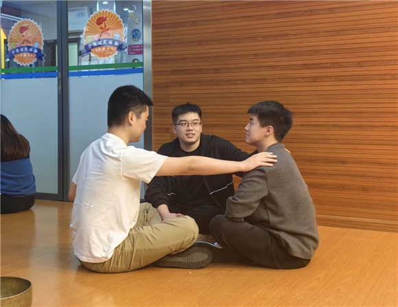 紧接着,冥想环节来临。在圆明老师的引导下,青年教师们开始专注地观察自己的呼吸。一呼一吸之间,仿佛时间都慢了下来。他们慢慢地深入自己的内心世界,在那种很深的放松状态中尽情地沉浸。而后,又在老师的轻声引导下,从这种很深的状态中慢慢地恢复、唤醒。