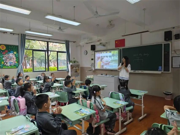 哇哦,英语课来啦!Aurata老师带领小笋娃们一起唱起了有趣的儿歌!我们一边唱,一边笑,课堂里到处都是我们欢快的声音。接着,在Aurora老师的引领下,我们跟着课文中的Xiaopu走进了他的家庭,认识家庭人物关系的知识,学会了介绍家人的英语句型。看着家庭照片,想着爸爸妈妈,我想说:I love you!