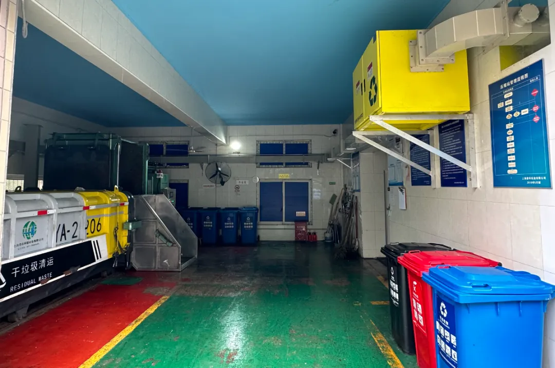 记者咨询了普陀区绿容局。万钧告诉记者,原来自90年代起,普陀区率先在辖区内推广生活垃圾清运模式,试行垃圾清运车不进小区作业,只从压缩站转运。物业保洁员在居住区内将干垃圾收集整理后,通过小型驳运车驳运至压缩站,在压缩站内进行减容压缩,这些干垃圾再转运至垃圾处置场。在2019年上海市《上海市生活垃圾管理条例》实施以后,普陀区已实现全域居民区干垃圾从生活垃圾源头中析出,不进社区完成干垃圾清运,压缩站均是对干垃圾进行收集、压缩。