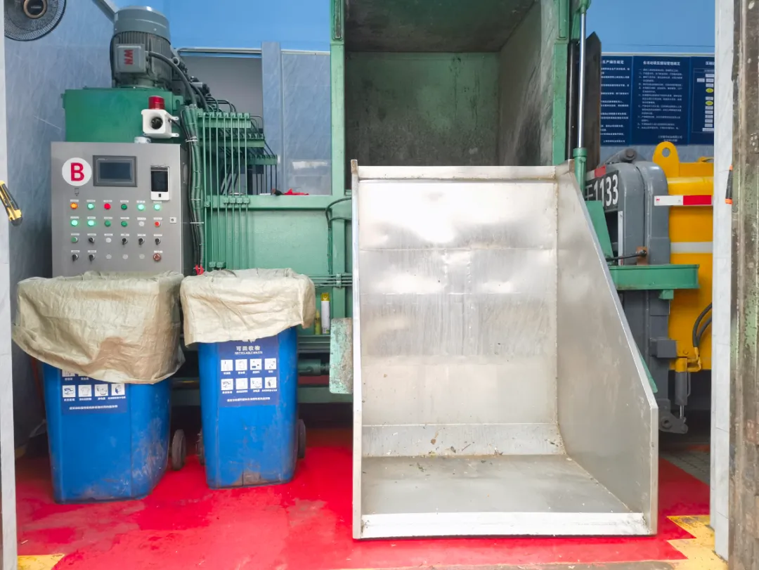 在这些生活垃圾中,干垃圾占据了相当大的比重。居民产生的干垃圾通常被堆放在小区的垃圾厢房内,一次性餐具、尘土、纸巾、污损塑料袋、废弃口罩……这些数量惊人的干垃圾如果直接运输到收运站,需要大量的人力物力,如何提升清运效率?目前通用的手段是依靠建立在全市各个社区、商场等区域的压缩站来提升效率。