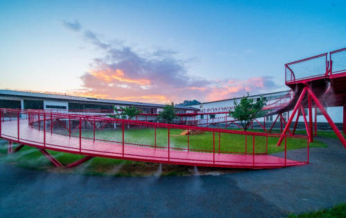 作为区政府重点支持的精品民宿创新项目,万达野鸭部落由知名设计师、REDe Architects 创始人金雷先生设计,巧妙地将80年代初的的老旧国营服装厂改造为现代美学空间。设计中大量采用当地自然材料,实现了自然与现代人文的和谐共生,构建了国内首个乡村亲子研学休闲美学度假目的地。
