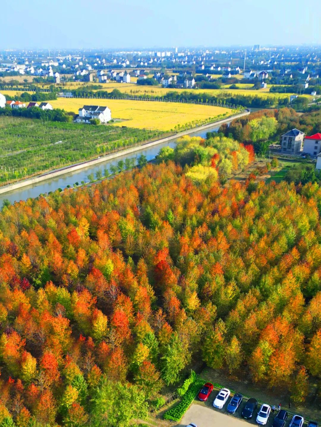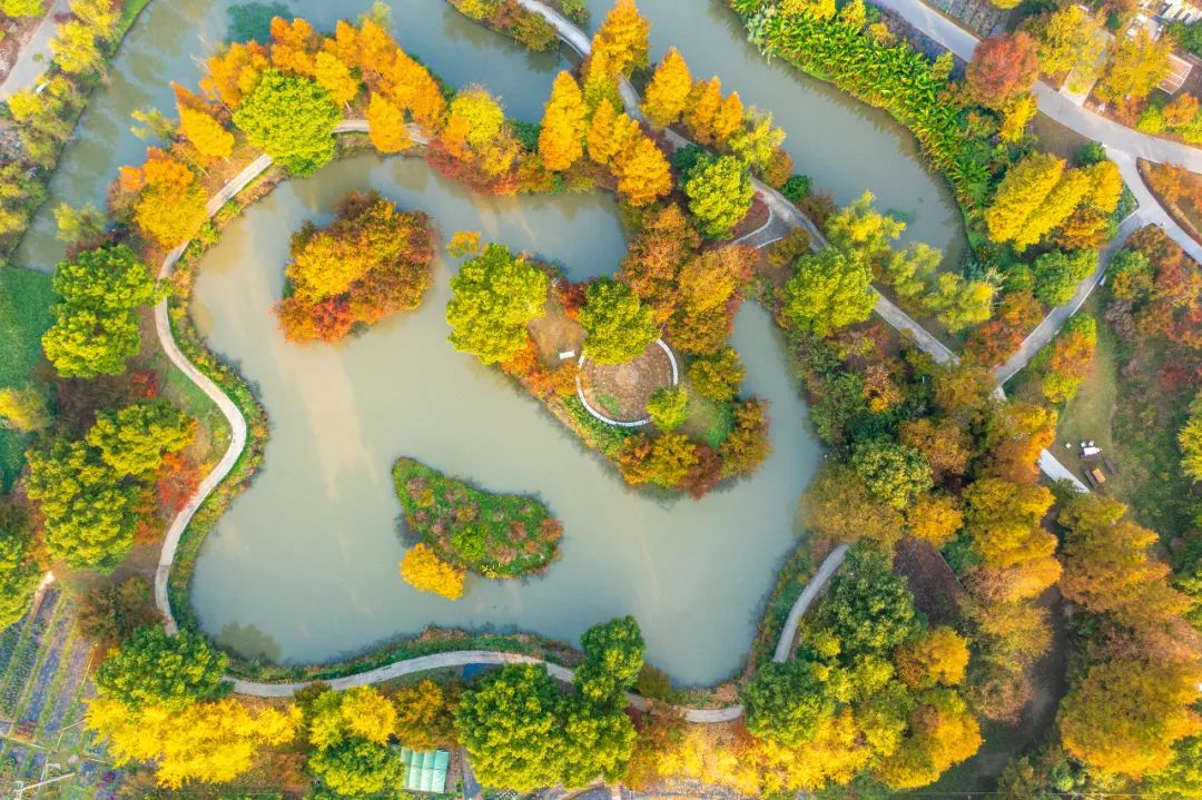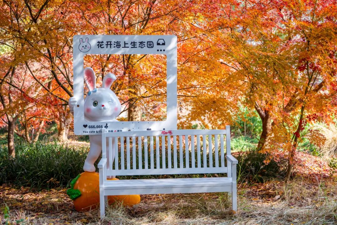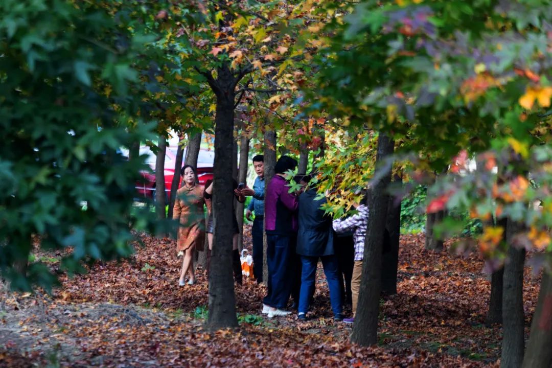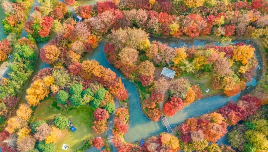 在位于朱泾镇的花开海上生态园,大自然以不同种类的树木为画笔,慢慢绘制出一幅由绿色变黄、由黄色变红的斑斓图景,本周末便可以在秋景园抢今年第一波“枫”头。