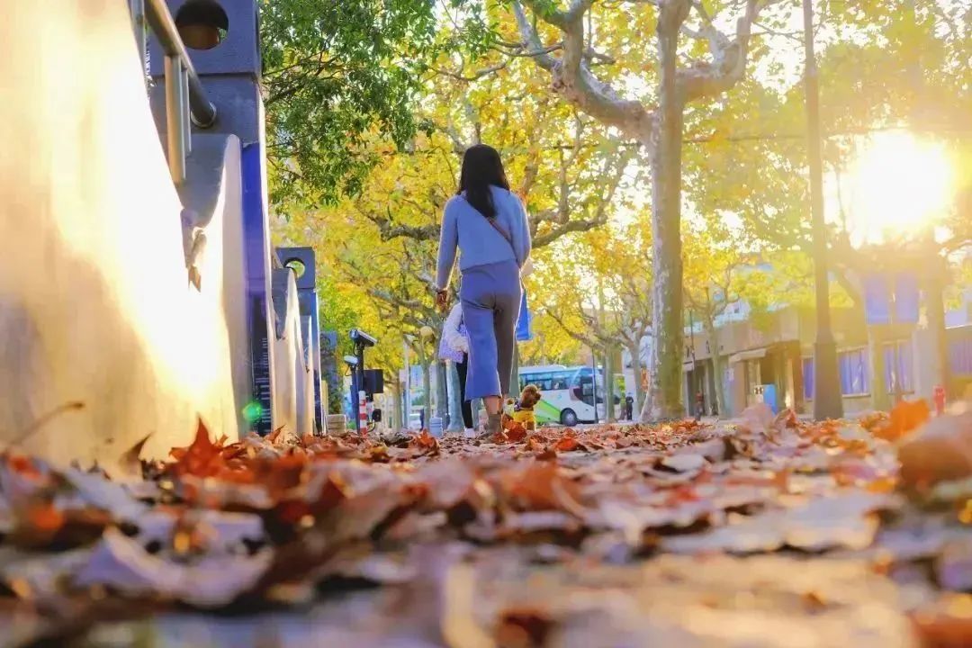 金一东路种植有80棵左右的悬铃木,如今高耸的悬铃木落满了一地金黄,景色美不胜收。