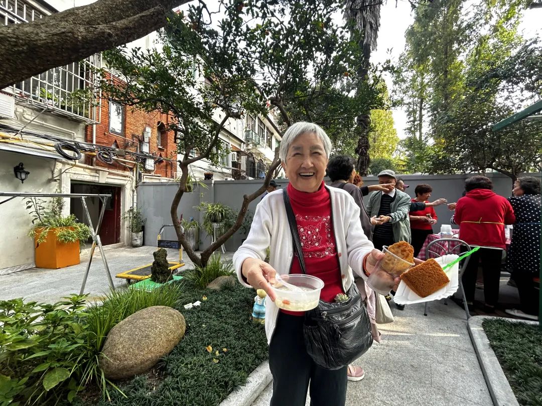 “自治联盟”招募的四位社区美食达人在现场忙得不亦乐乎,市集上他们带来了自制的香甜松软的蛋糕、金黄酥脆的炸藕盒、茶香四溢的茶叶蛋和软糯可口的酒酿圆子,居民们闻香而来竞相品尝,赞不绝口。这一刻,美食不仅是一种味觉的体验,更让每个人都感受到温暖和幸福。