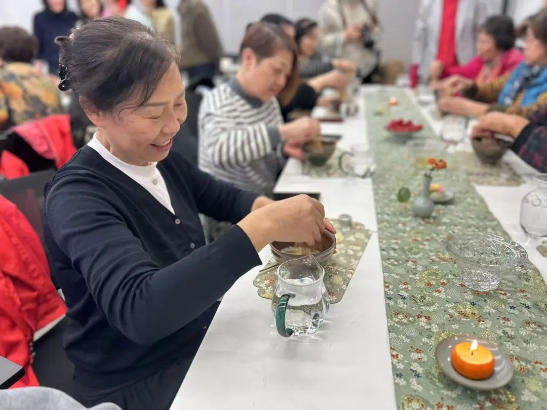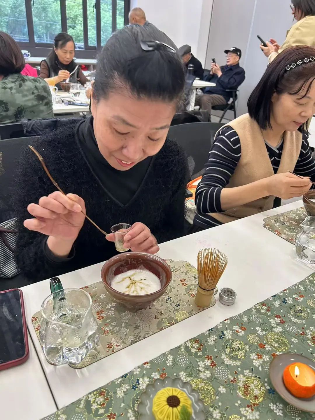 在科普老师的示范之后,居民们早已按捺不住内心的激动,跃跃欲试。他们小心翼翼地操作起来,有的居民专注地盯着茶碗,手腕来回摆动,神情严肃而又认真;有的居民则不时与身旁的人交流心得,分享着点茶的乐趣。“刚开始的时候,我总是掌握不好力度,茶汤表面总是出现不均匀的泡沫。”居民王阿姨笑着说道,“后来在老师的指导下,我慢慢找到了感觉,终于成功点出了一碗完美的茶。”