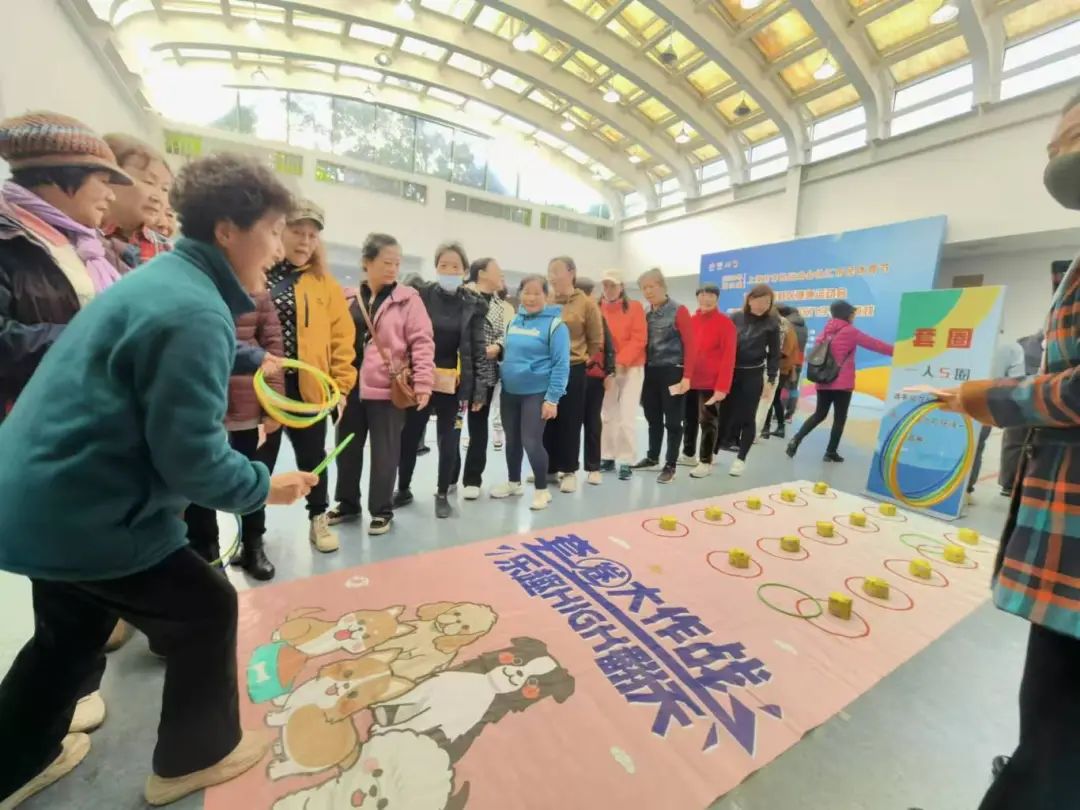 本次大赛共设置了6个游戏项目,涵盖了老上海人耳熟能详的童年弄堂游戏以及中式传统游戏。这些游戏包括套圈子、跳房子、扯铃子、抽陀子、踢毽子和投壶。比赛现场欢声笑语不断,选手们全情投入,观众们也热情高涨,为选手们加油助威。
