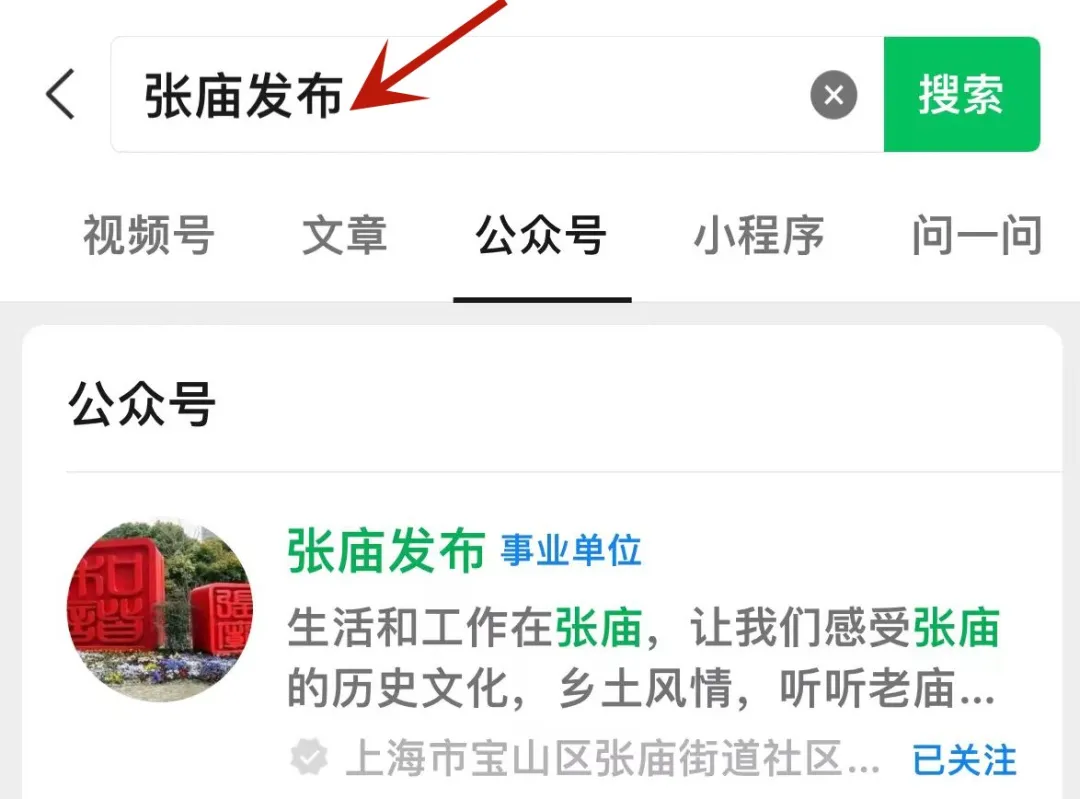 第一步:关注“张庙发布”微信公众号