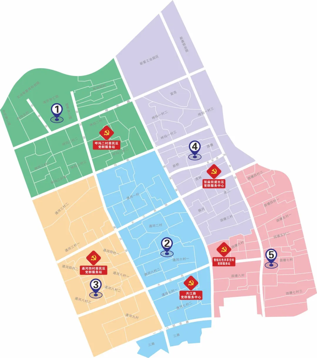 ❏粉色:张庙街道第五街区