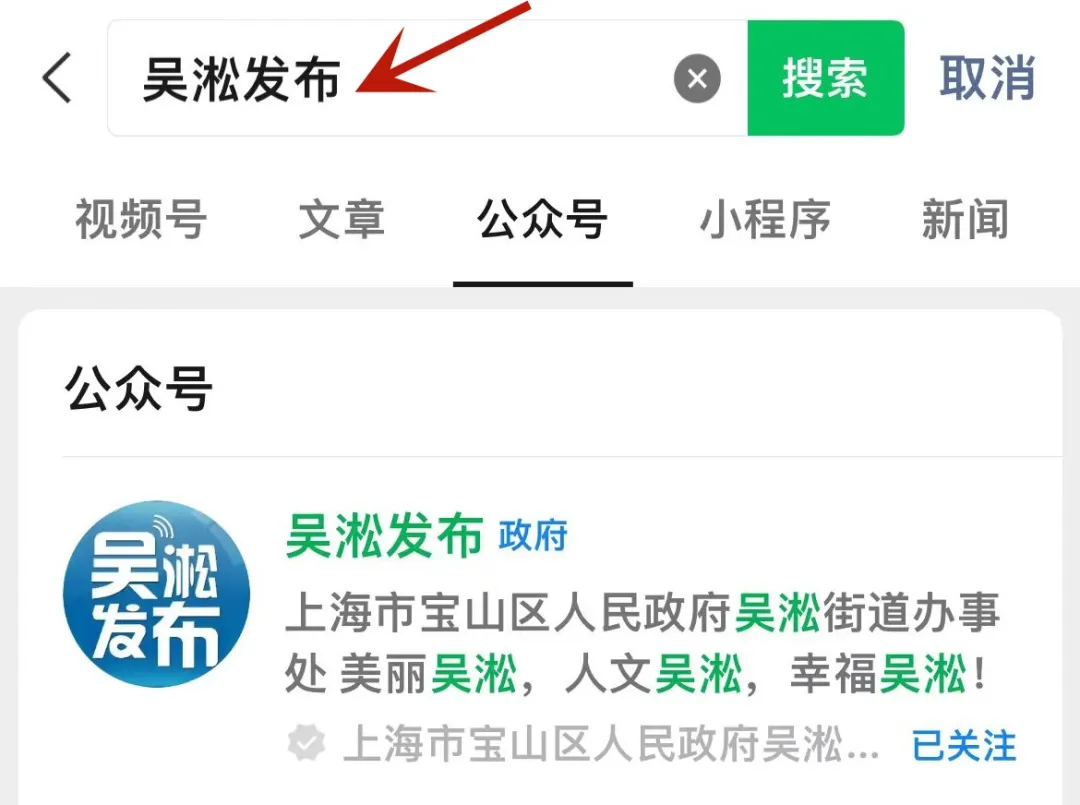 第一步:关注“吴淞发布”微信公众号